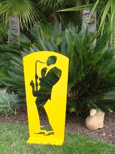 Des sculptures de toutes tailles, découpées au laser dans des plaques d'acier de 5 à 10 mm d'épaisseur, puis patinées selon l'humeur de l'artiste ou le désir de l'amateur.