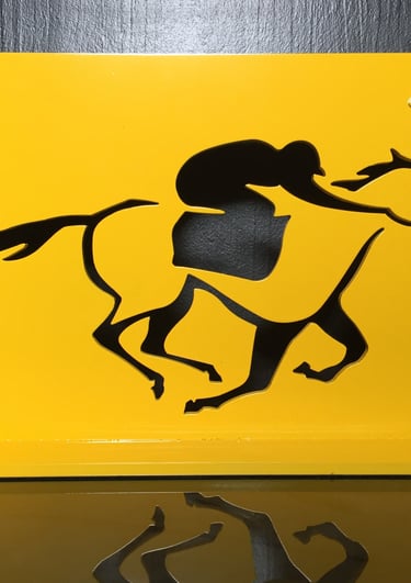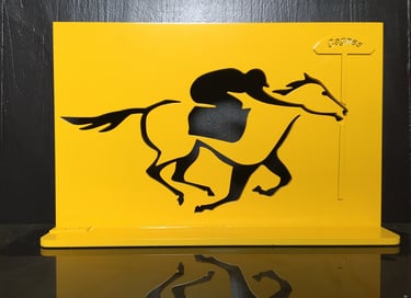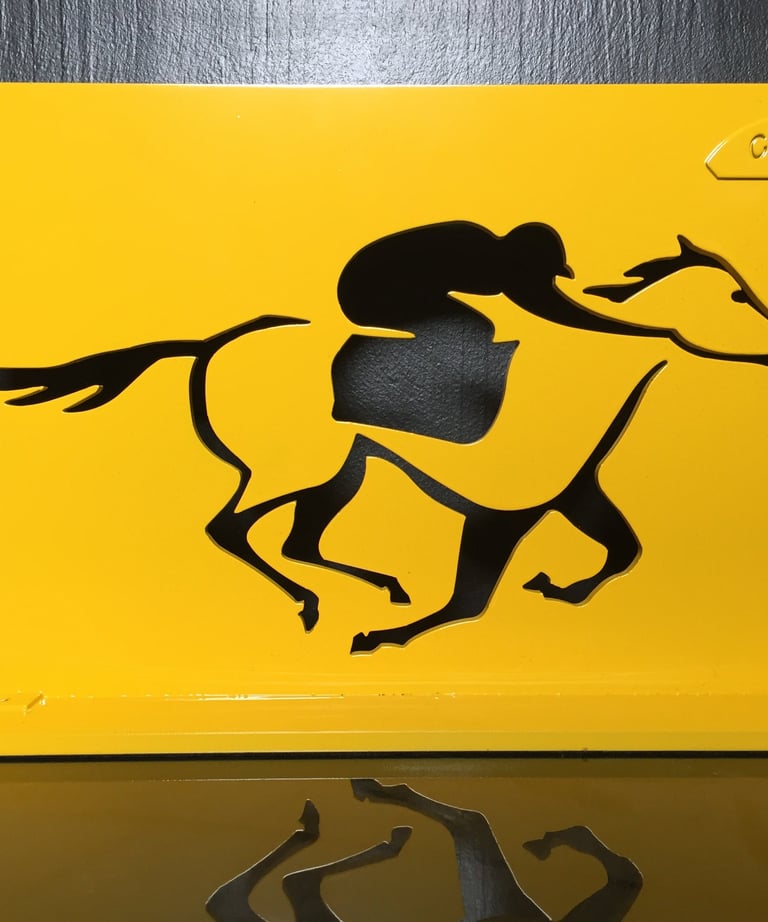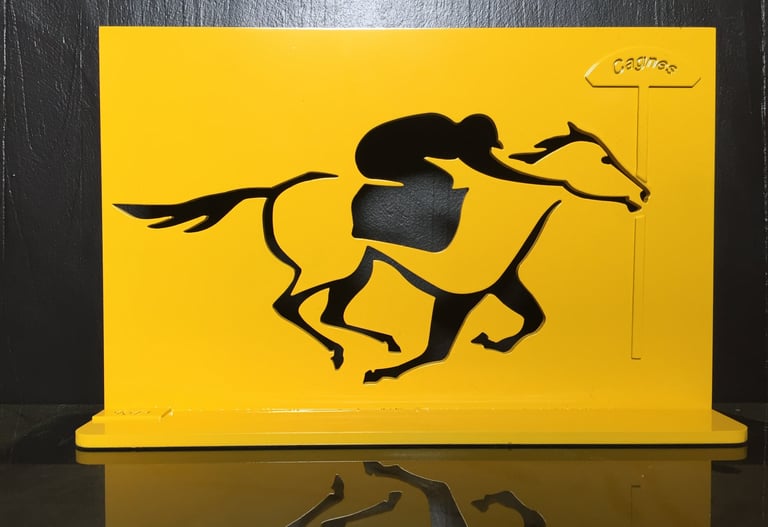 Propriétaire de son logo et des droits associés, la SCCA m'a demandé de leur en faire un agrandissement sur tôle d'acier (248 cm x 125 cm, épaisseur 10 mm, poids 260 Kgs) selon le concept qui caractérise mon travail de sculpture. Cette pièce a été inaugurée par Maître Forcioli-Conti, Président de la SCCA, le mercredi 18 juillet 2018, en ouverture de la soirée "Elégance" de l'hippodrome de Cagnes-sur-mer