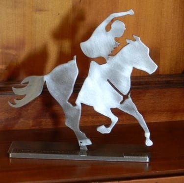 Les pièces sont toujours découpées au laser dans une tôle d'acier de 5 à 10 mm d'épaisseur, selon la taille des sujets. Puis elles reçoivent une patine métal brut ou de couleur selon l'humeur...de l'artiste ou du client amateur.