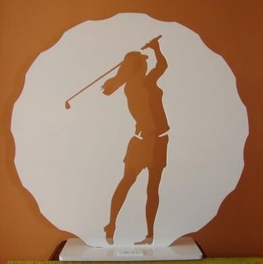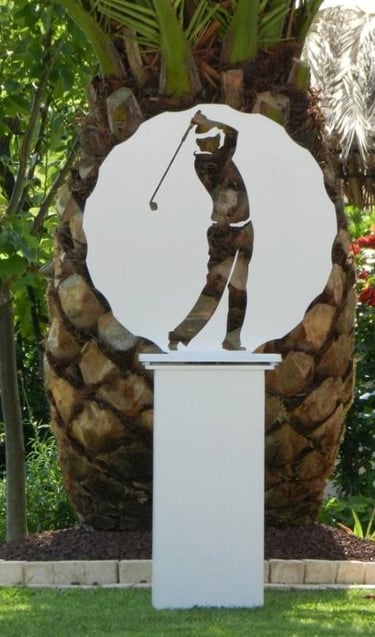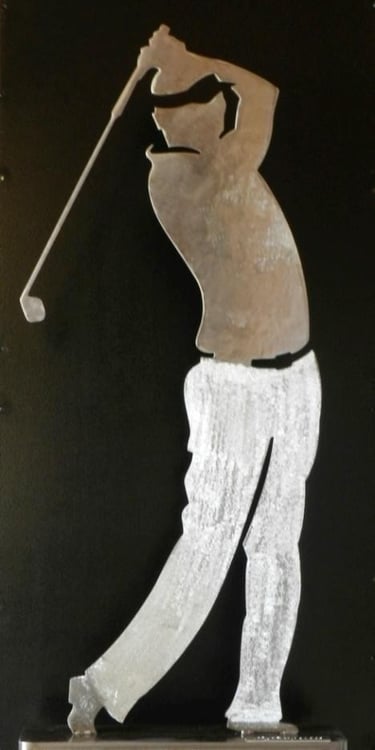 A la demande de mon épouse, je réalise cet agrandissement du Golfeur au back swing N° 70, pour le placer dans le jardin et peut être faire des émules...