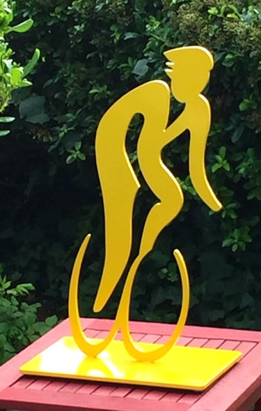 Depuis 2011, les "Essentielles" explorent aussi le thème du sport, toujours guidées par la recherche du mouvement. Découpées au laser dans de l'acier de 5 à 10 mm, elles sont patinées en métal brut ou en couleur, selon l’inspiration.